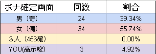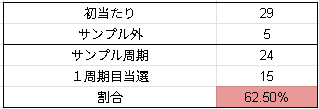 天国確定でゎないですが、1周期目での当たりの割合です。