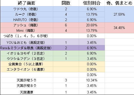 1周期目の百鬼夜行、有利切断後の天国濃厚、マガイマガドモードなどゎサンプル外として取っています