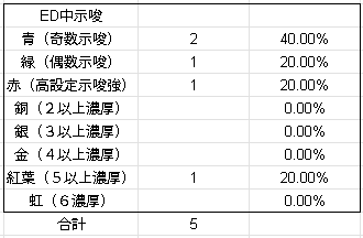 ED中にレア役を引いた際にでる示唆演出の割合です。