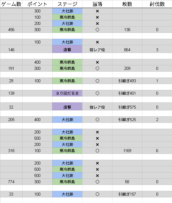 1周期目を確認する前にだるま落としなどで当たってしまった、またゎ