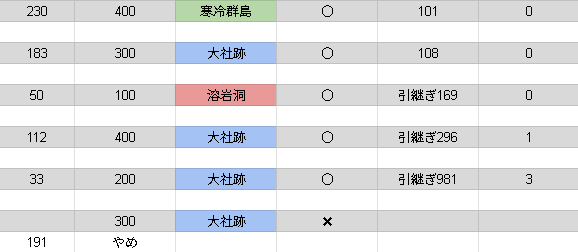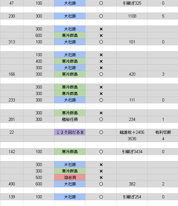 1周期目の百鬼夜行、有利切断後の天国濃厚、マガイマガドモードなどゎサンプル外として取っています