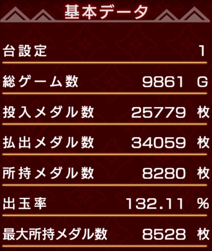 スマスロ モンハンライズの設定1、9861G +8280枚終了のデータです。