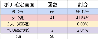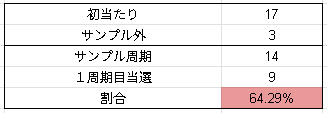 天国確定でゎないですが、1周期目での当たりの割合です。