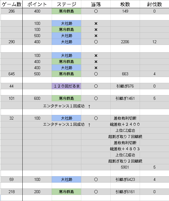 1周期目の百鬼夜行、有利切断後の天国濃厚、マガイマガドモードなどゎサンプル外として取っています