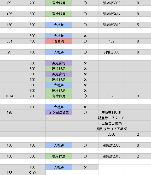 1周期目を確認する前にだるま落としなどで当たってしまった、またゎ