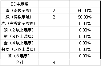 ED中にレア役を引いた際にでる示唆演出の割合です。