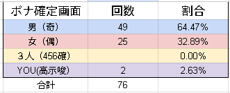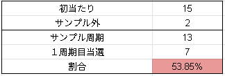 天国確定でゎないですが、1周期目での当たりの割合です。