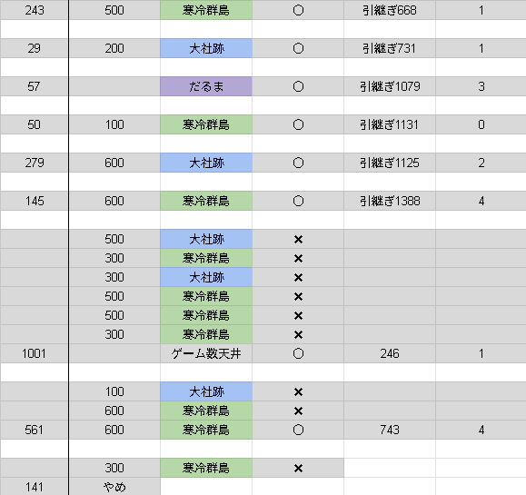 1周期目を確認する前にだるま落としなどで当たってしまった、またゎ
